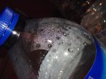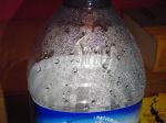When I looked at the water bottle, all of the little water beads moved toward me, there are a few large drops scattered all around, but a huge clump of the tiny ones facing me.