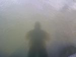 Today I was walking along the dock at the lake near my home, when I noticed my shadow on the water. There seemed to be lines radiating outward and a circular yellow or golden glow, so took this pic with my less than ideal camera phone.